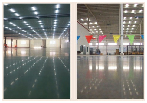五、迷人的光澤 隨著時間的推移,混凝土密封固化劑處理的混凝土地面會顯現(xiàn)迷人的大理石般的光澤,地面在日常清洗養(yǎng)護(hù)和使用的過程中會進(jìn)行自我拋光,出現(xiàn)使用越久,地面越光亮的效果。